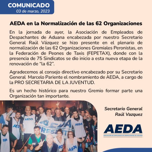 En la jornada de ayer, la Asociación de Empleados de Despachantes de Aduana encabezada por nuestro Secretario General Raúl Vázquez se hizo presente en el