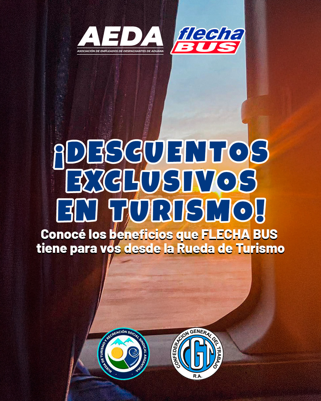 Desde AEDA gestionamos buscando más convenios y oportunidades que garanticen que puedas descansar y disfrutar con tu familia, por eso te acercamos estos increíbles beneficios junto al Grupo Flecha Bus: